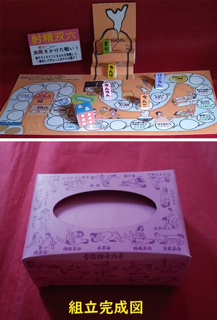 「下品で最低8」で販売した射精双六と古伝四十八手ポケットティッシュケースのセットになります。